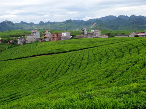 Những đồi chè xanh mướt bao quanh thị trấn nông trường Mộc Châu.